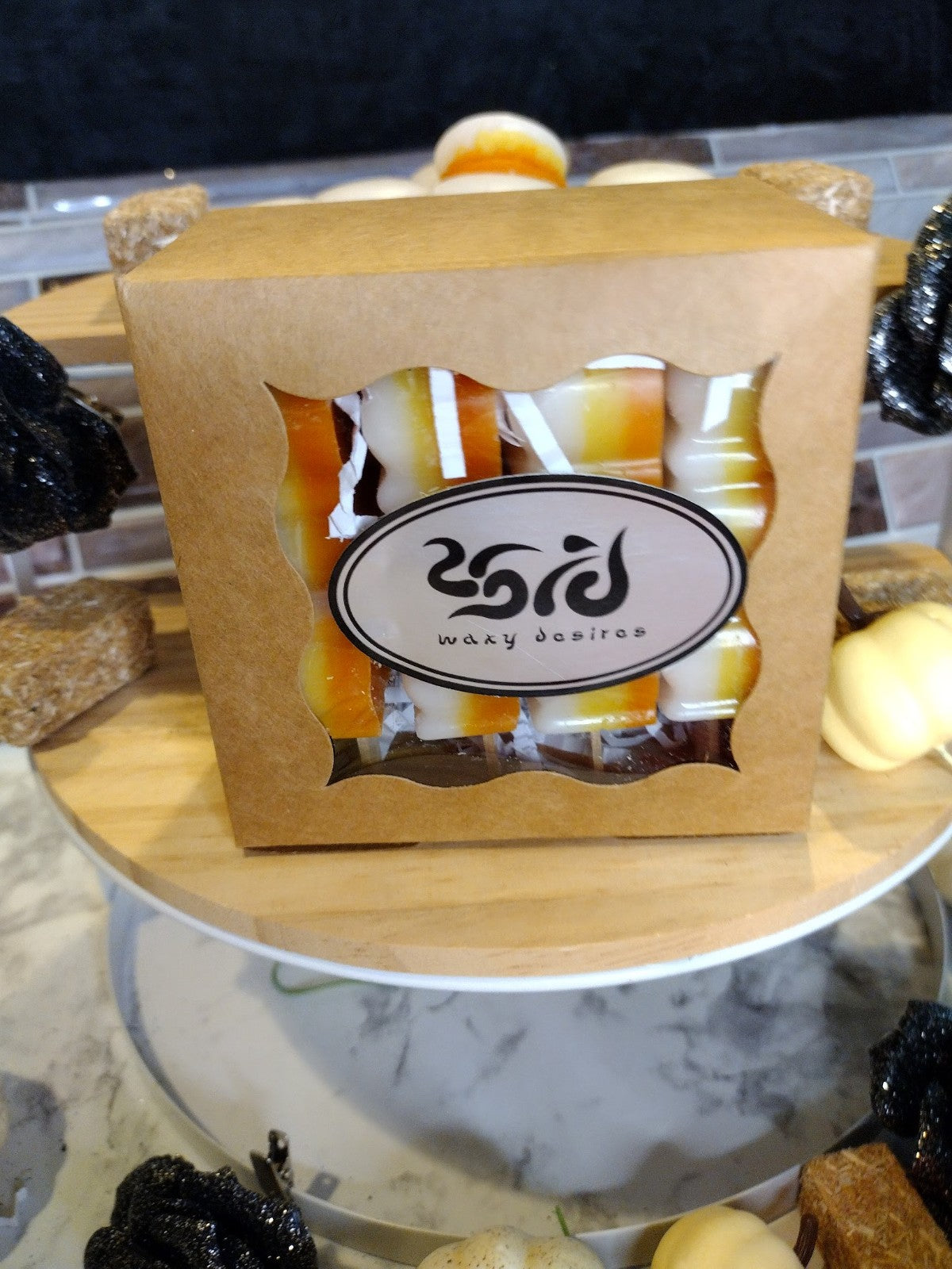 These babies are perfect to break up in your wax warmer or to decorate your table. They come boxed up in a set of 4 with a net weight of 6 oz. They exhibit the sweet and buttery aroma of the honey and caramel Halloween treat.